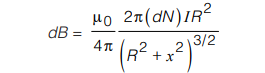 Let us consider a coil of width dx at a distance x from the point P on the axis of the solenoid. The field at P due to this coil is given by